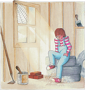 Puis, sur la pointe des pieds, elle va ranger le cheval dans sa cachette.